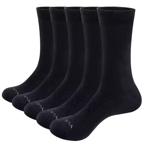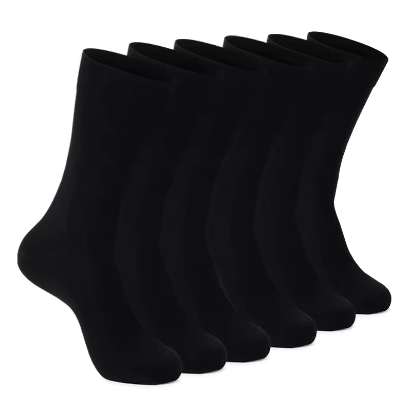 6 Pairs Dress Socks Black Plus Size, High Quality Combed Cotton Crew Socks, Black Cool Breathable Casual Socks